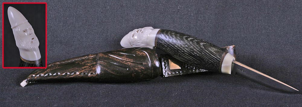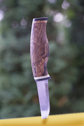 I noen år syslet jeg med knivmaking, helst når jeg fikk tak i fine skaftmaterialer. "Odinkniven" fikk skaft av 2500 år gammel myreik fra Akersmyr, rett over dalen. Endene er av hvaltann.