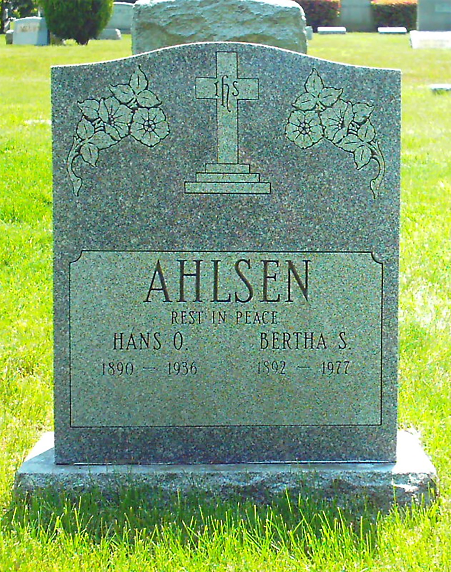 - Hans Olaus Ahlsen+ f. 8 aug. 1890, d. 26 jun. 1936