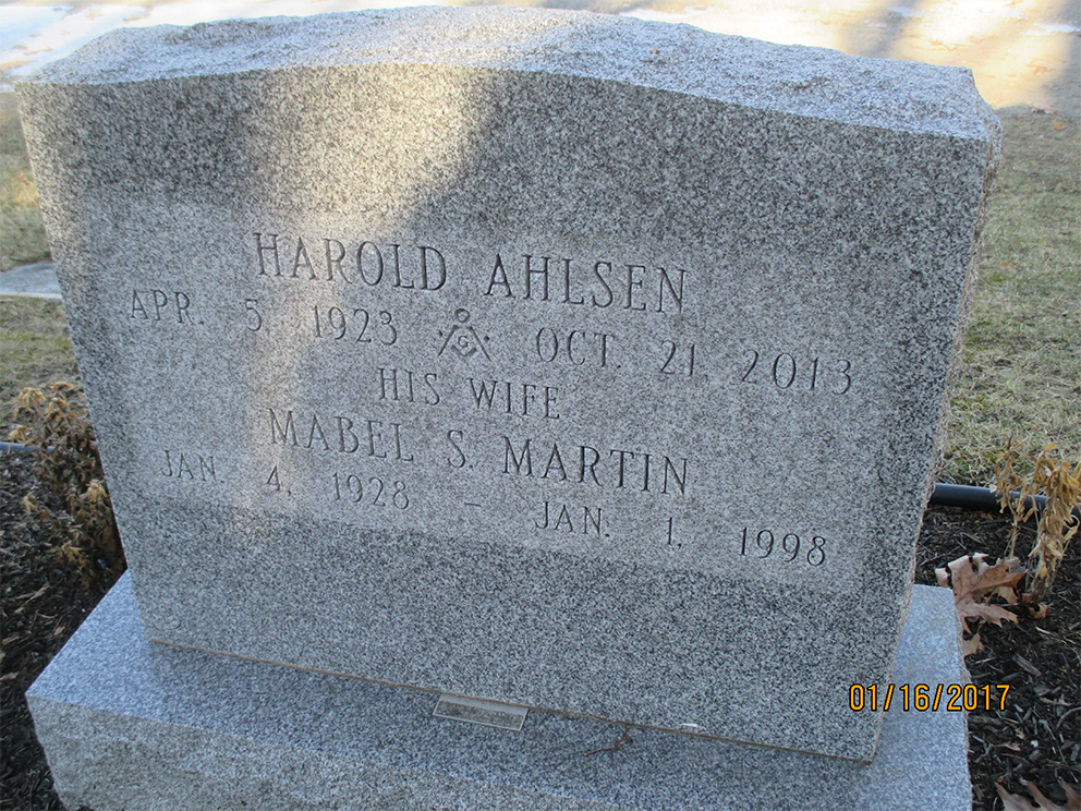 - Harold Ahlsen giftet seg med Mabel Shirley Martin. f. 1928 d. 1998 giftet seg 1947