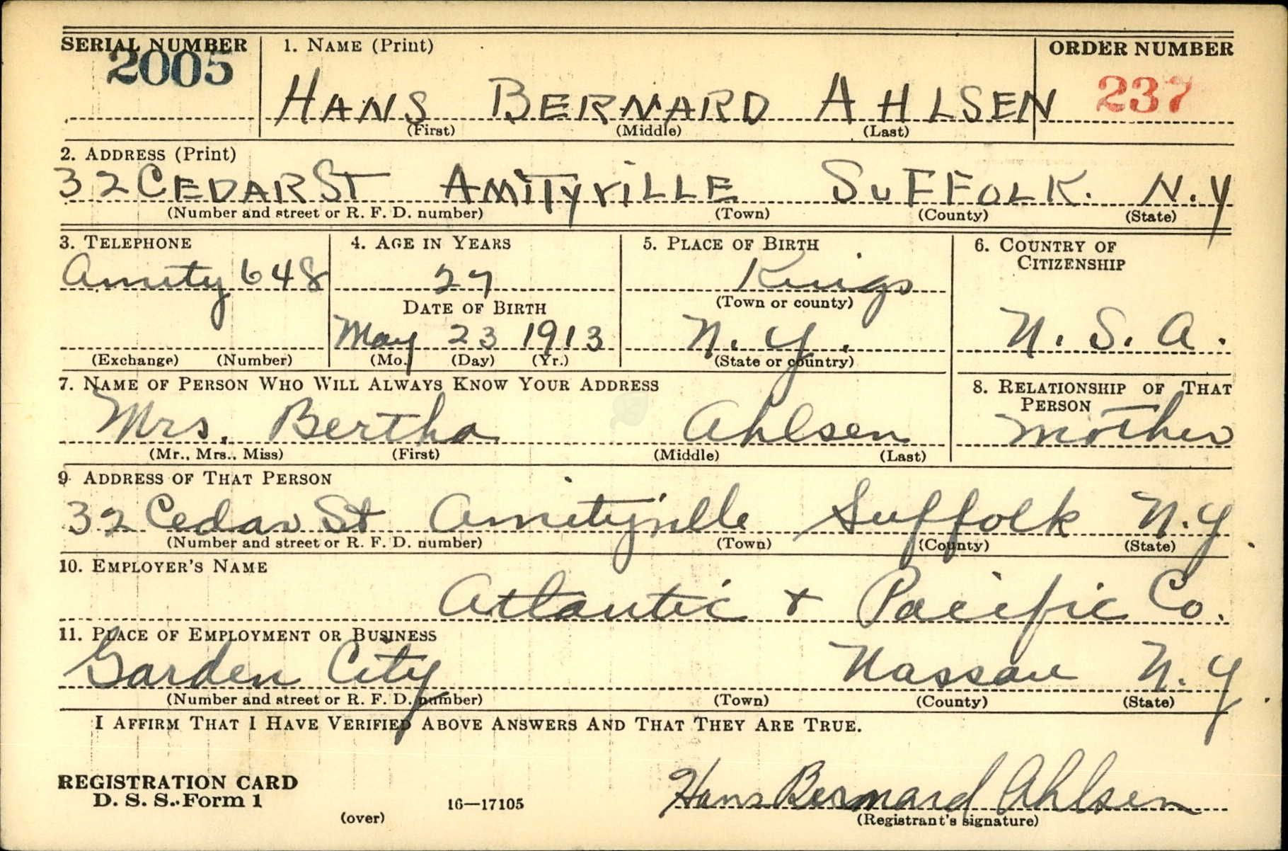 - Hans Bernhard Ahlsen ble født den 23 mai 1913.