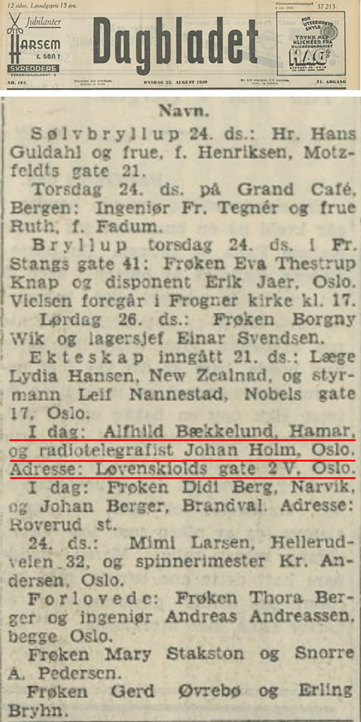 - Hennes navn som gift var Ahlsen.