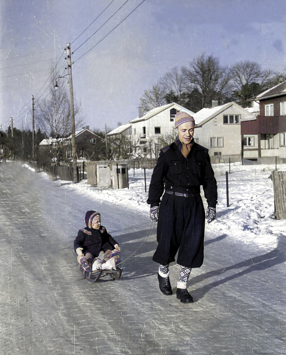 jeg trodde å få disse ”dingsene”! Lille-Sol har Hansis ridebukse og støvler og to vinterkåper på seg, en haug med